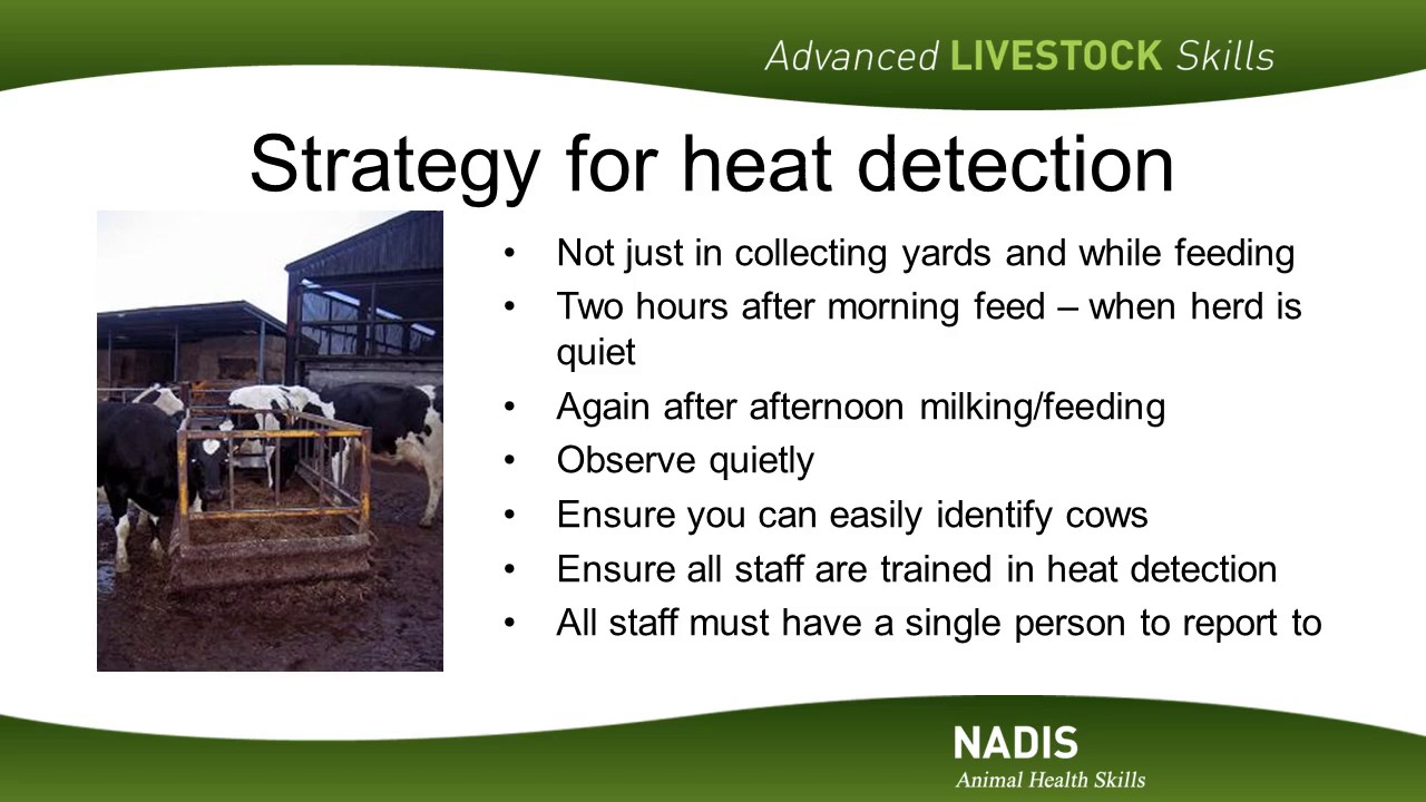 - Whatever system you use ensure that you record heats effectively, assess how effective your heat detection and use these records to constantly improve.