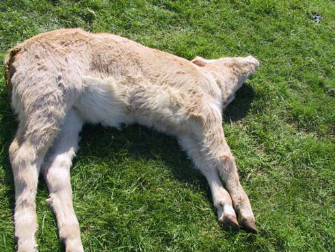 Cattle with BSE appear detached, isolate themselves and stand with an arched back. (Compare the attitude of the calf with its dam)