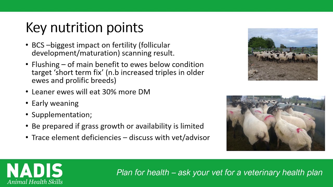 Dietary energy supply around the time of implantation is likely to be adequate because autumn grass is still available after flushing ewes and there is little energy demand from the developing foetus.
